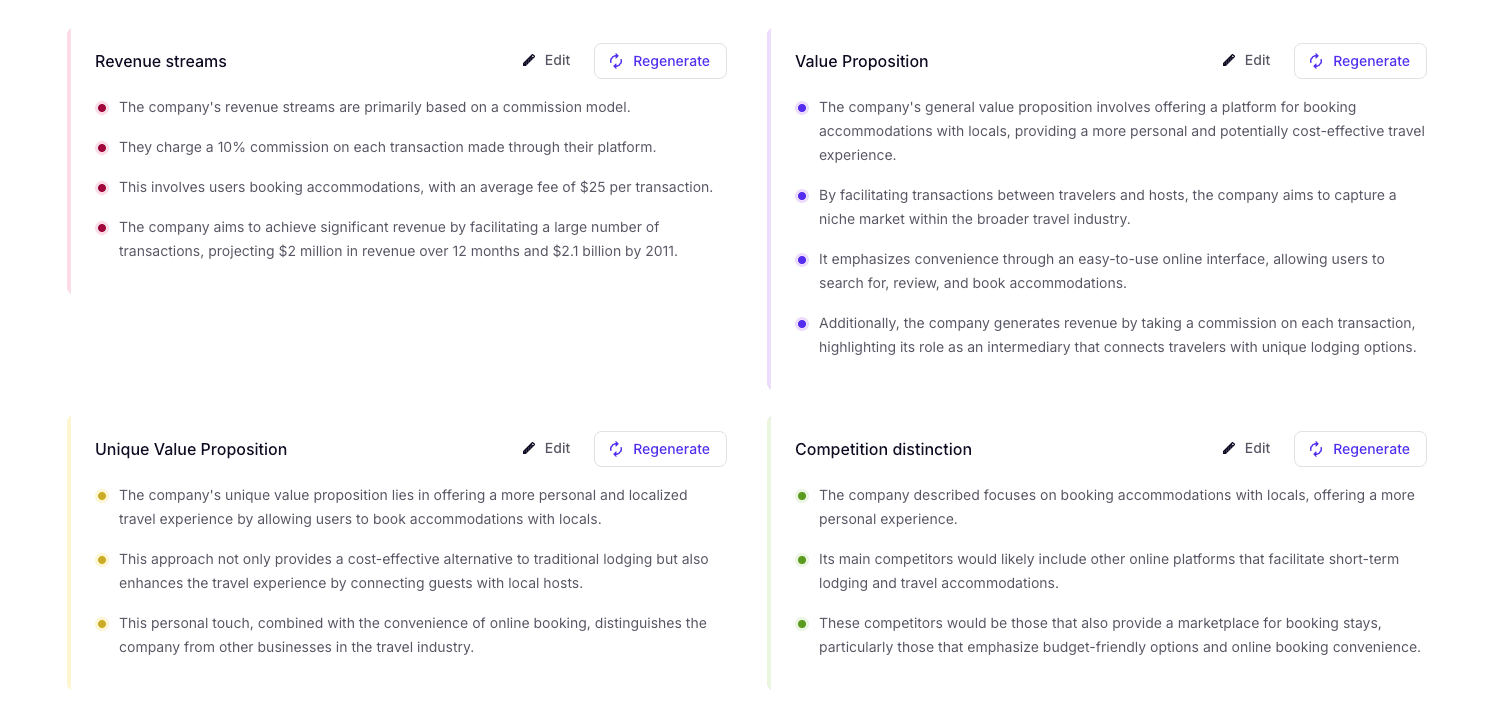 Our AI extracts key insights from your data to create a structured, reliable BMC. You can refine and adjust it as needed.