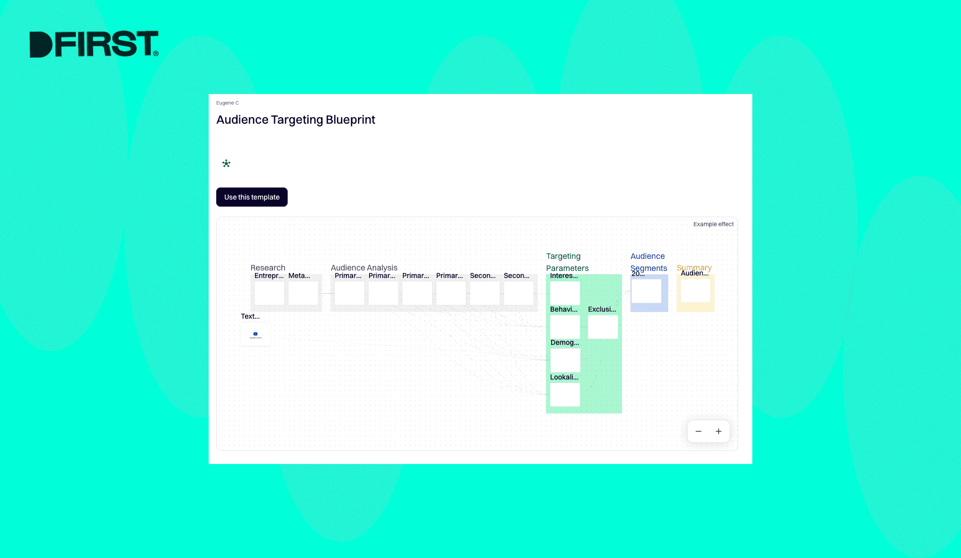 You start by adding research nodes to your canvas. Point them at competitor sites or social media feeds to pull data. You can also upload your own customer research or brand documents to the Data Room. The AI connects all this information, analyzes it, and helps you build detailed profiles based on real-world data. Or, use our pre-built ai-powered audience targeting template.