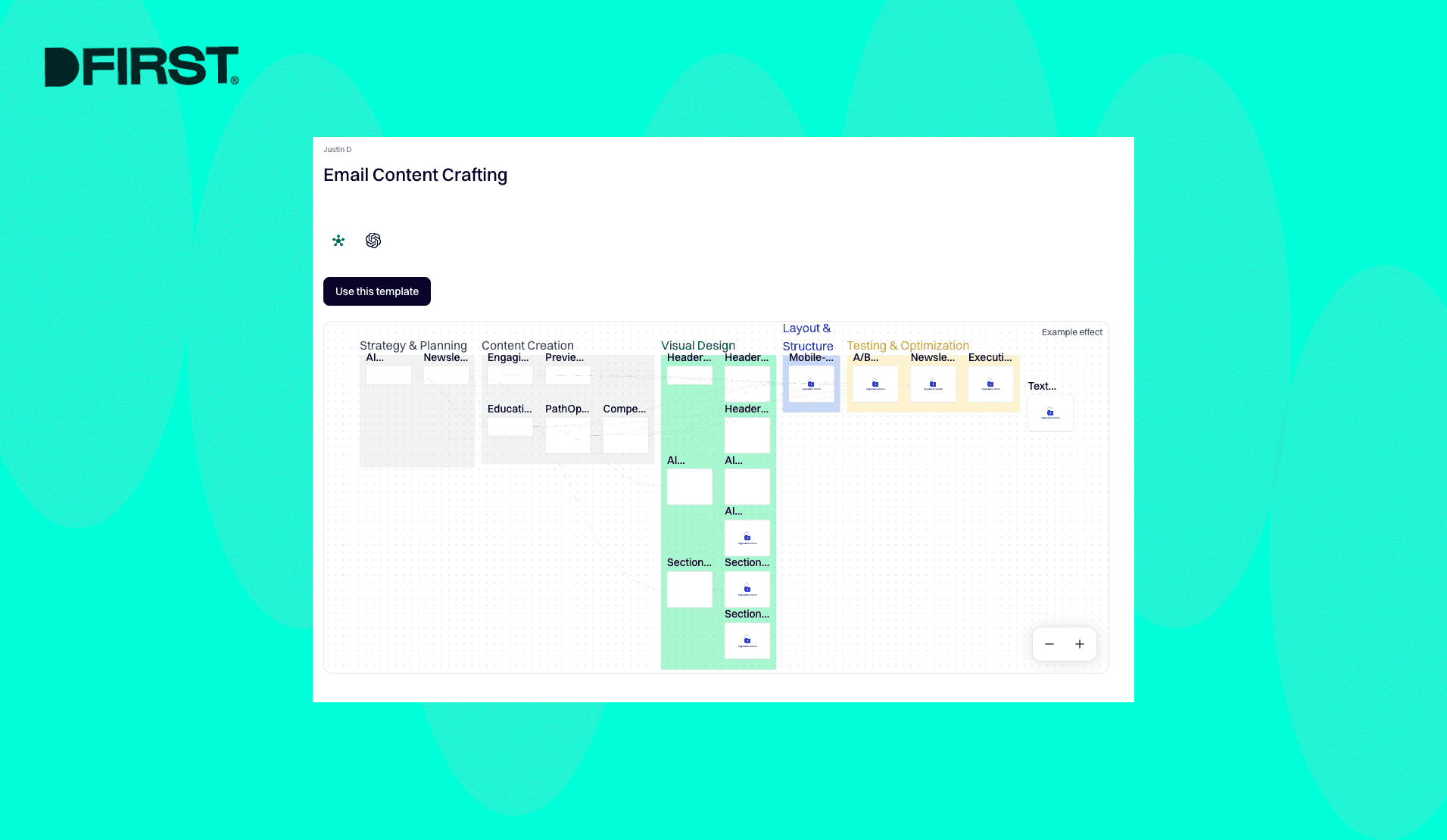 → Working Space: Every campaign gets a dedicated whiteboard. Start with a template or ask the AI to build a workflow for you. Save the best ones to use again later.